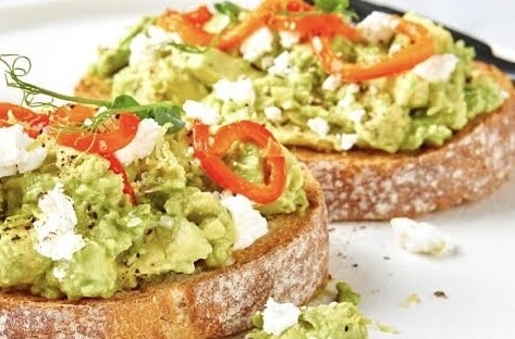 Sourdough w’ smashed avocado, persian feta, rocket & toasted pumpkin seeds (suggested add-on Hashbrowns!)